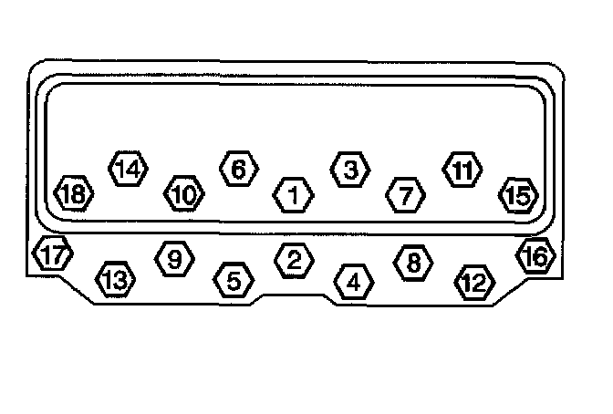 Important: The long bolts are used in locations 1, 2, 3, 6, 7, 8, 9,10, 11,14, 16, and 17. The medium length bolts are used in locations 15 and 18. The short bolts are used in locations 4, 5, 12, and 13.