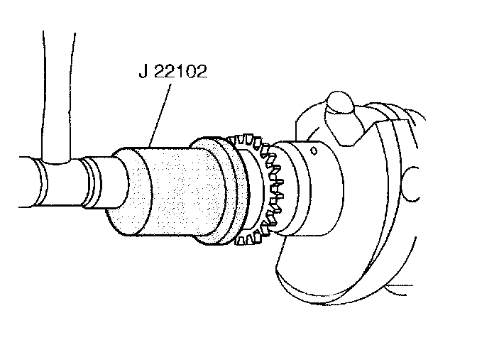 1. Use the J22102 in order to install the crankshaft sprocket. Align the keyway of the crankshaft sprocket with the crankshaft pin.