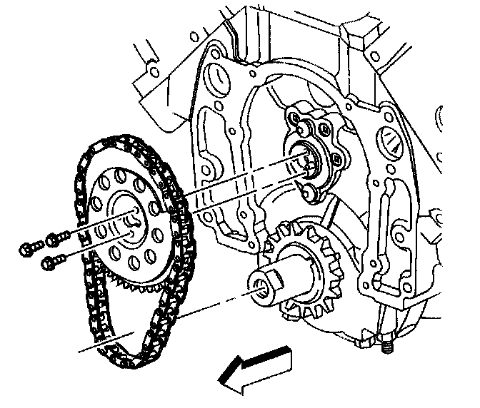 Important: The sprocket teeth must mesh with the timing chain in order to prevent damage to the camshaft retainer.