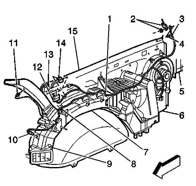 3. Remove the auxiliary lower A/C temperature sensor (10) from the air distribution duct.
