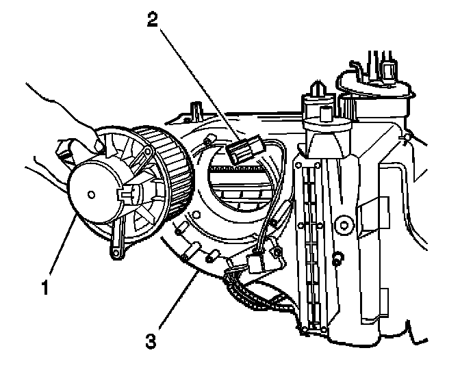 2. Disconnect the electrical connector (2) from the blower motor (1).