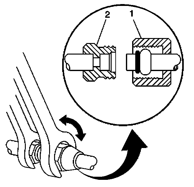 - For compression style fittings use a back up wrench on the fitting (2) and tighten the fitting nut (1) to specification.