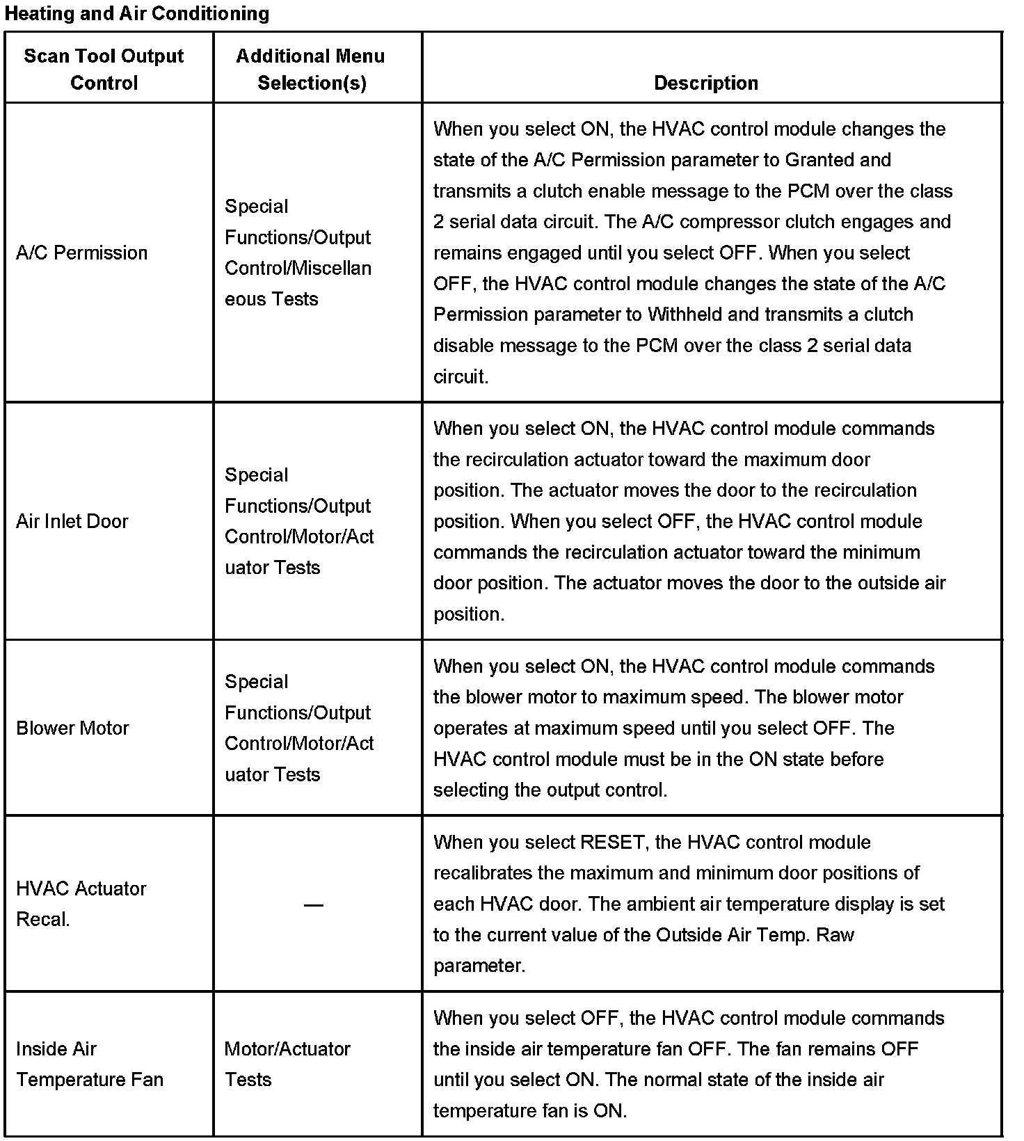 Scan Tool Output Controls - Heating and Air Conditioning