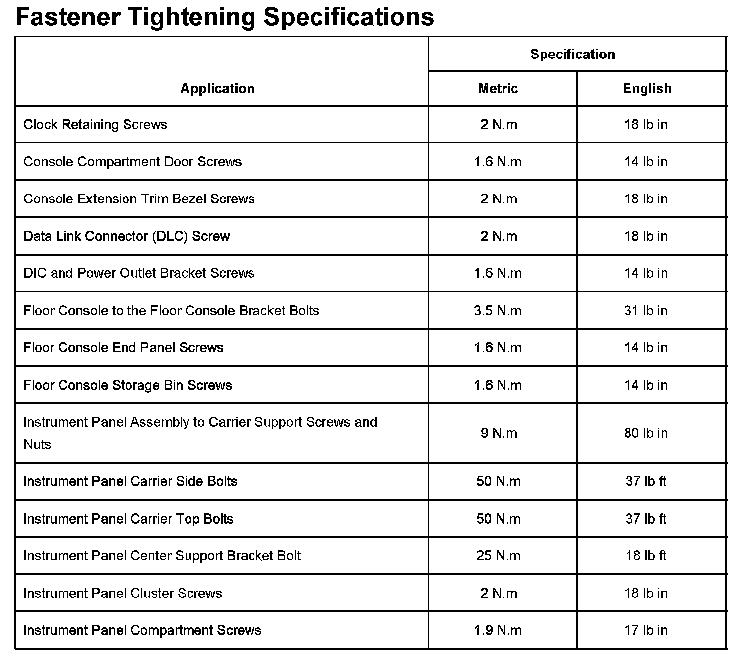 Fastener Tightening Specifications Part 1: