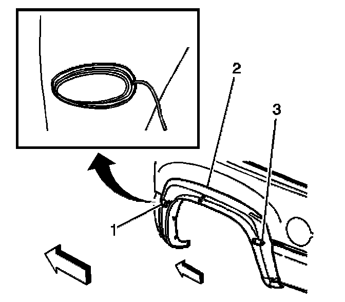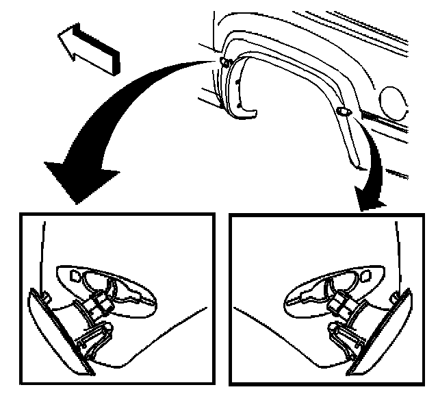 3. Grasp the marker lamp (1,3) and pull towards the wheel to remove.