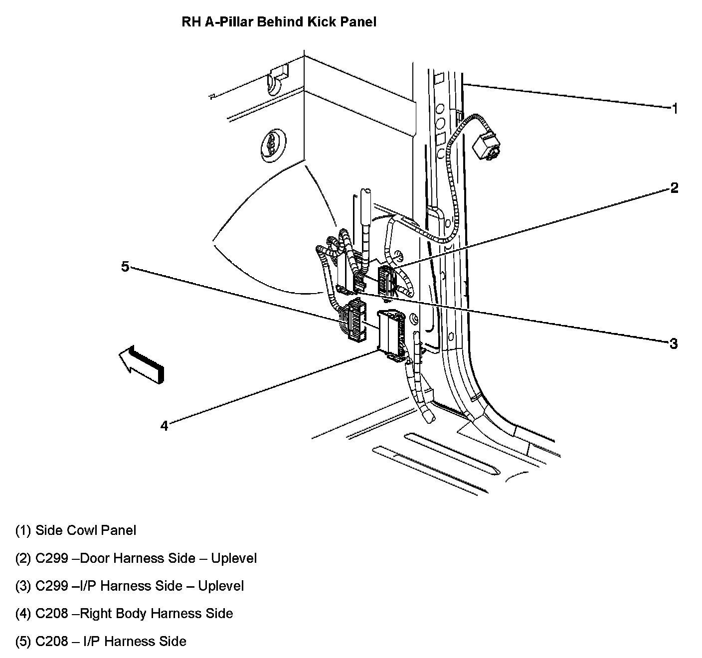 RH A-Pillar Behind Kick Panel: