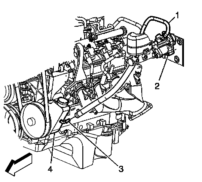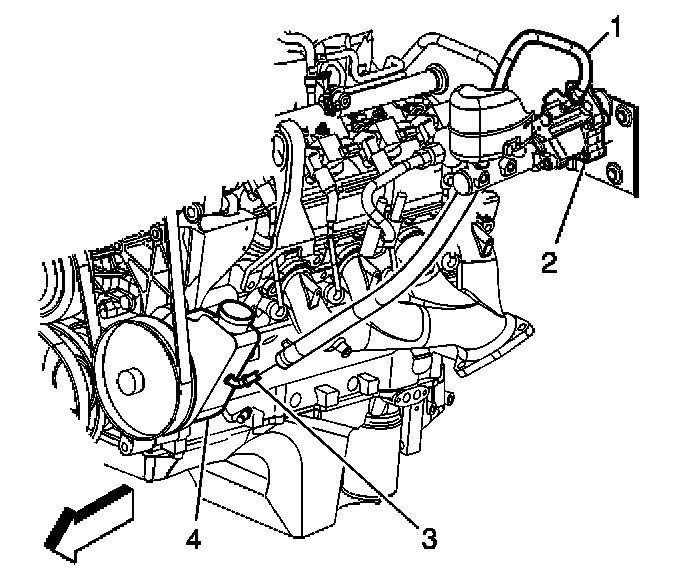 3. Install the brake booster outlet hose to the power steering pump (4).