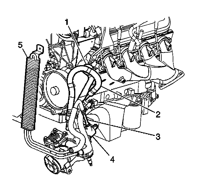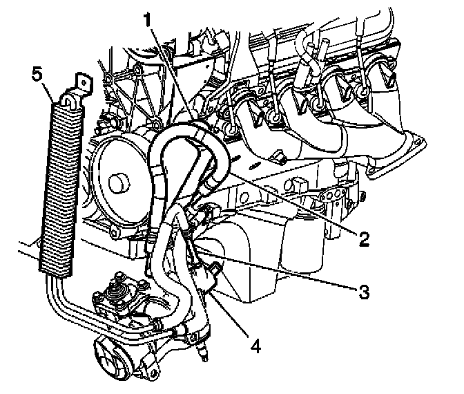 3. Remove the clamp retaining the power steering inlet hose from the power steering pump (5).