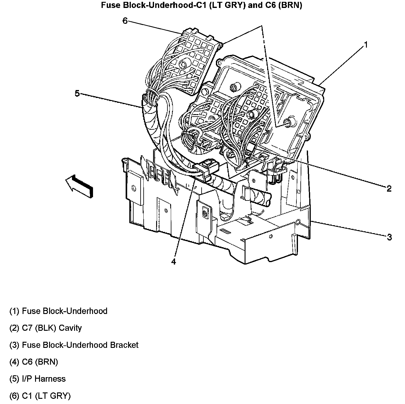 Fuse Block-Underhood-C1 (LT GRY) and C6 (BRN)