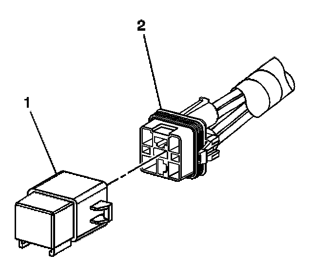 4. Separate the relay (1) from the wire harness connector (2).
