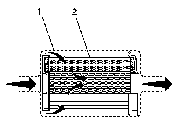 The fuel filter is located on the fuel feed pipe, between the fuel pump and the fuel injectors. The paper filter element (2) traps particles in the fuel that may damage the fuel injection system. The filter housing (1) is made to withstand maximum fuel system pressure, exposure to fuel additives, and changes in temperature.