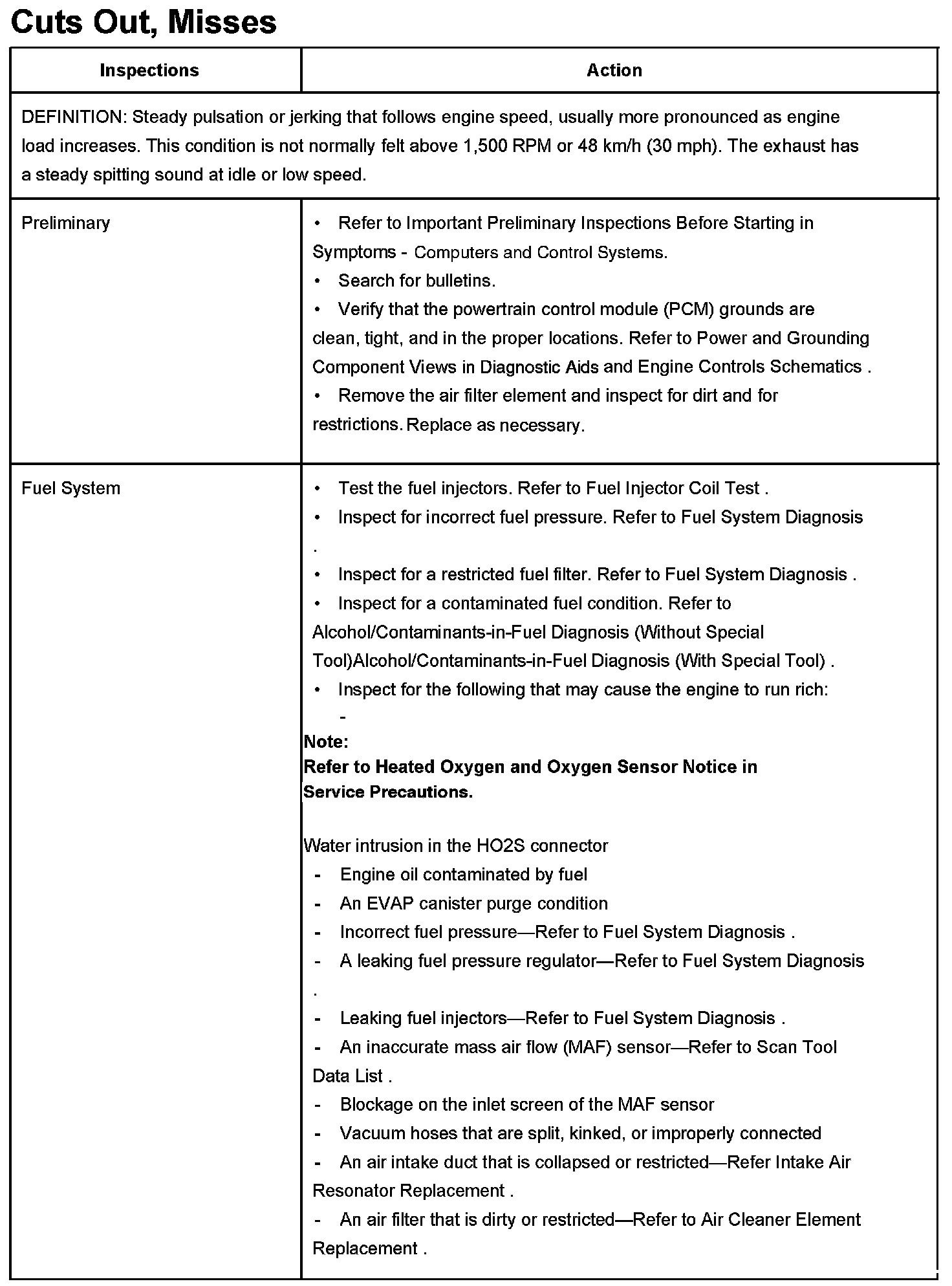 Cuts Out, Misses