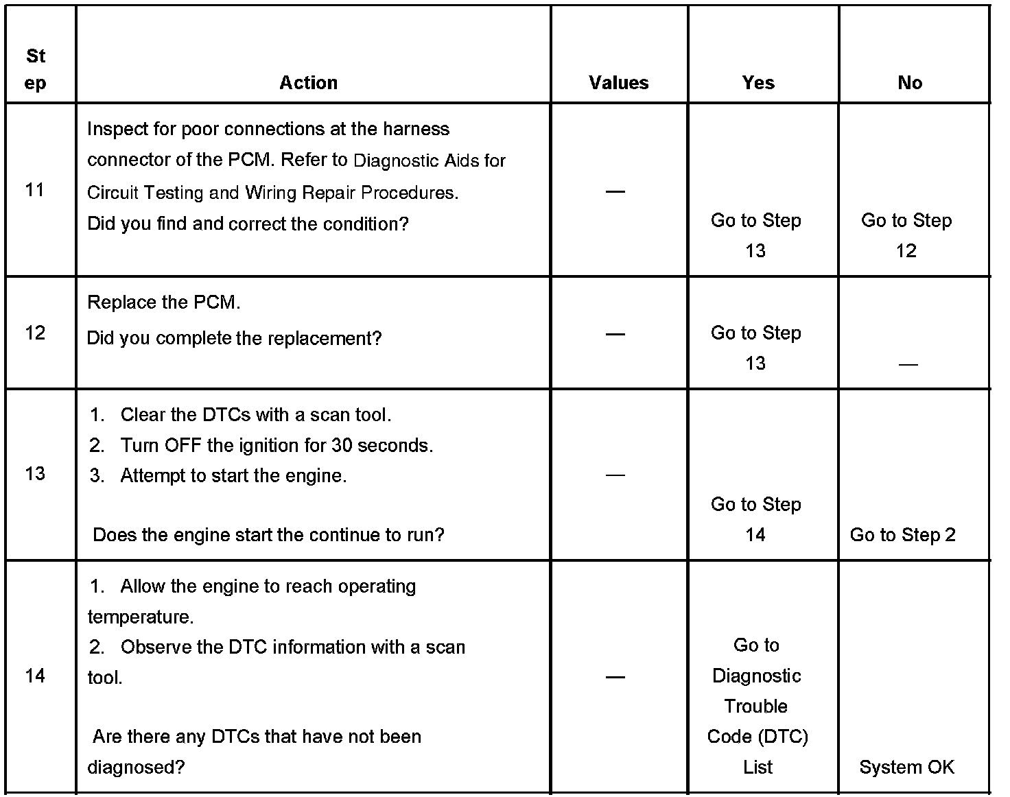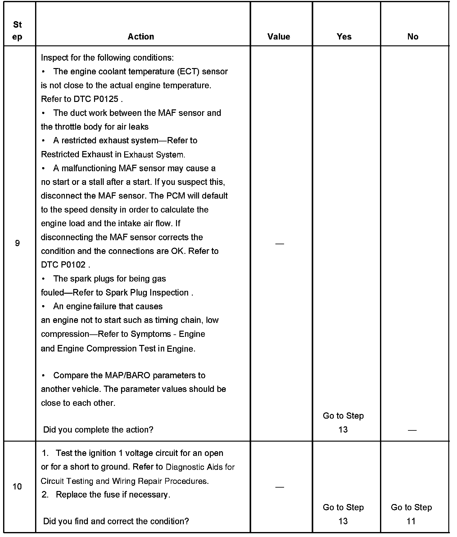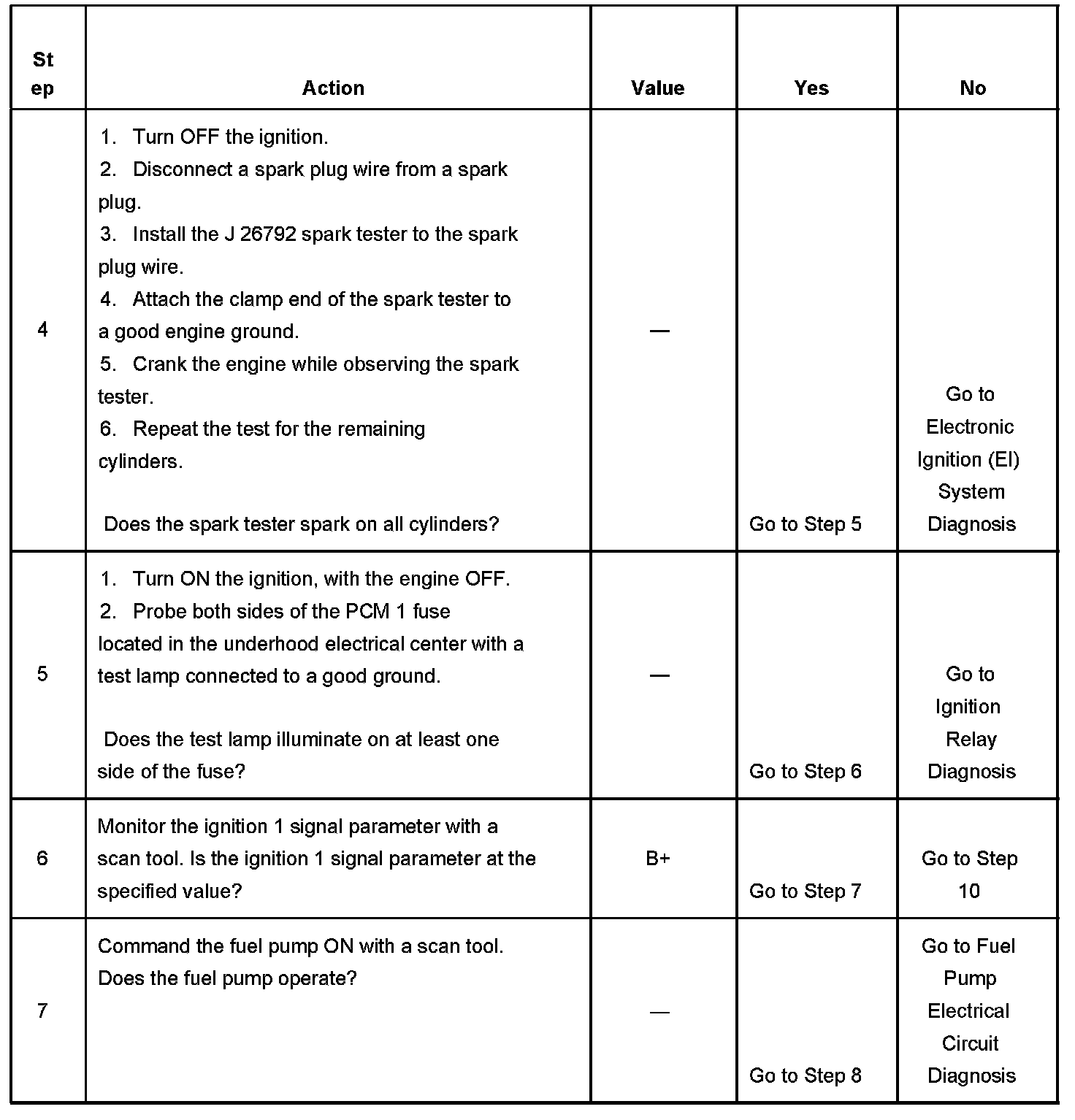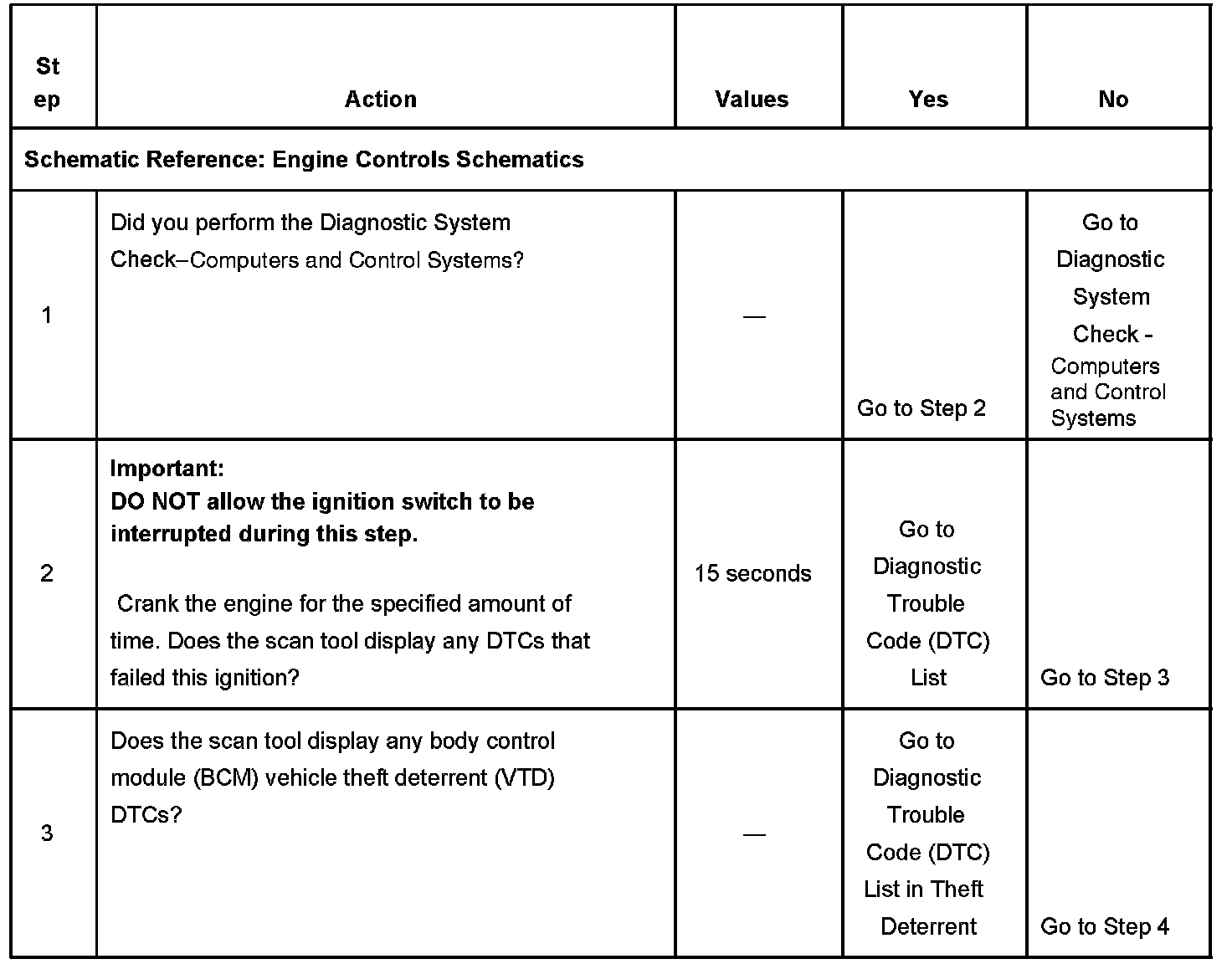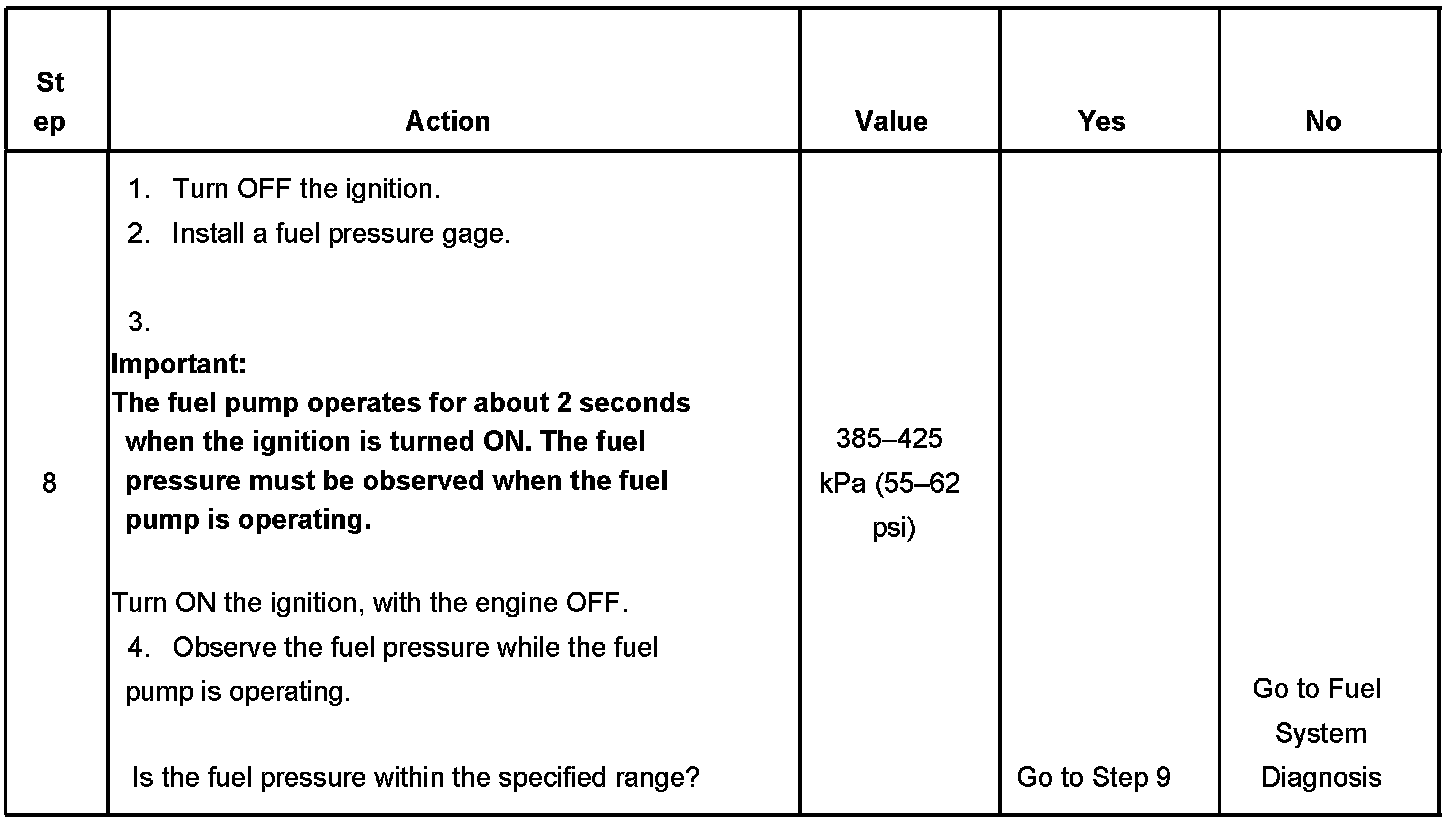 DESCRIPTIONThe Engine Cranks but Does Not Run diagnostic table is an organized approach to identifying a condition that causes an engine to not start. The diagnostic table directs the service technician to the appropriate system diagnosis. The diagnostic table assumes the following conditions are met: