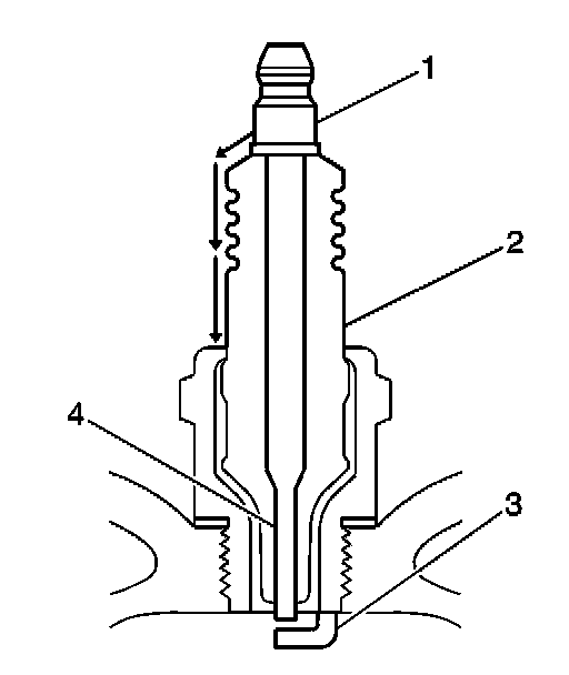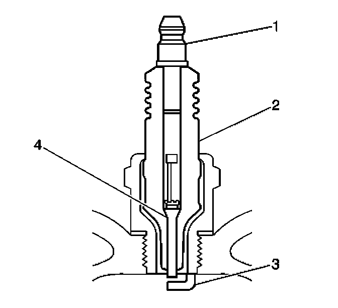 - Inspect for the correct spark plug torque. Refer to Ignition System Specifications. Insufficient torque can prevent correct spark plug operation. An over torqued spark plug, causes the insulator (2) to crack.