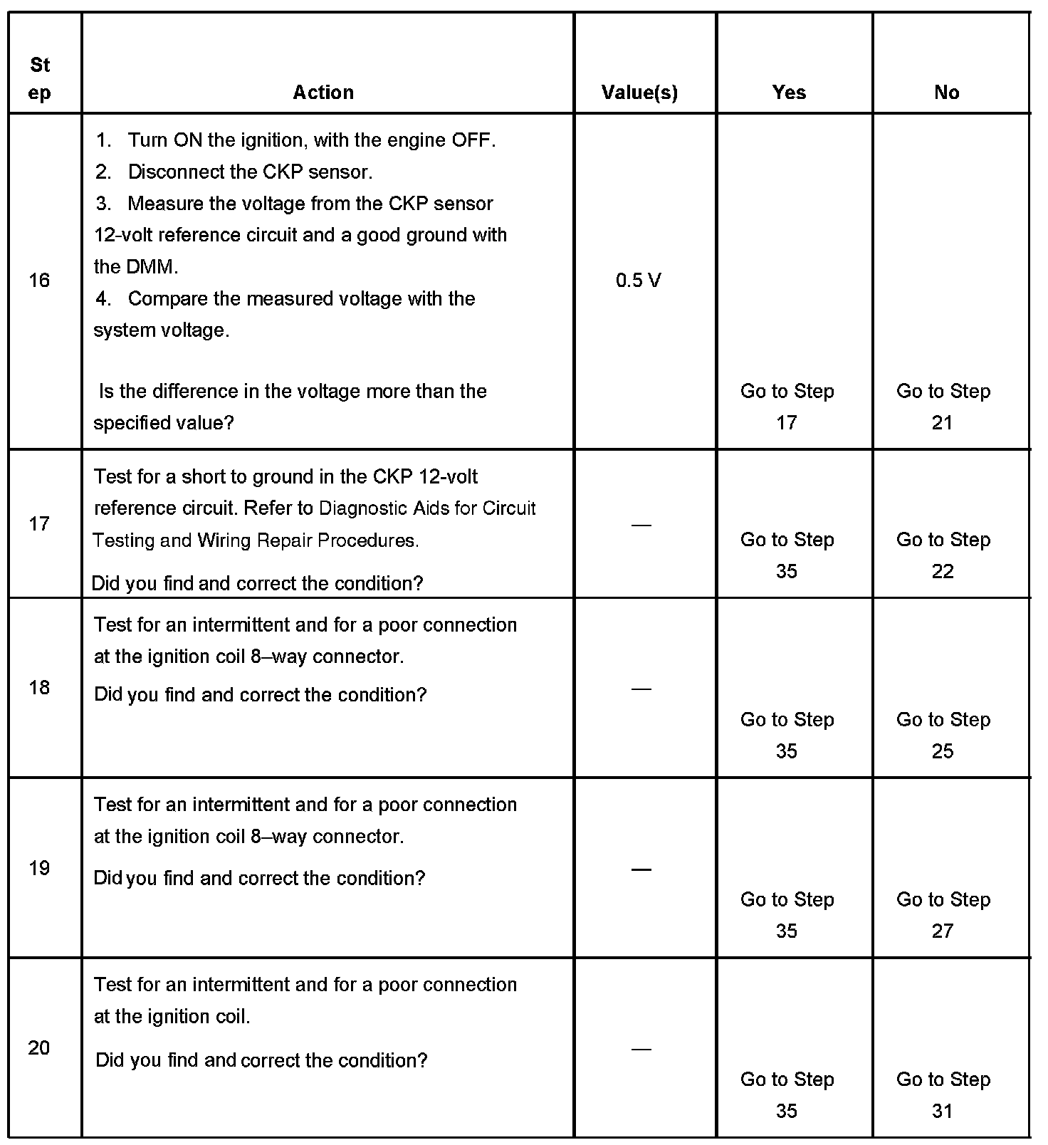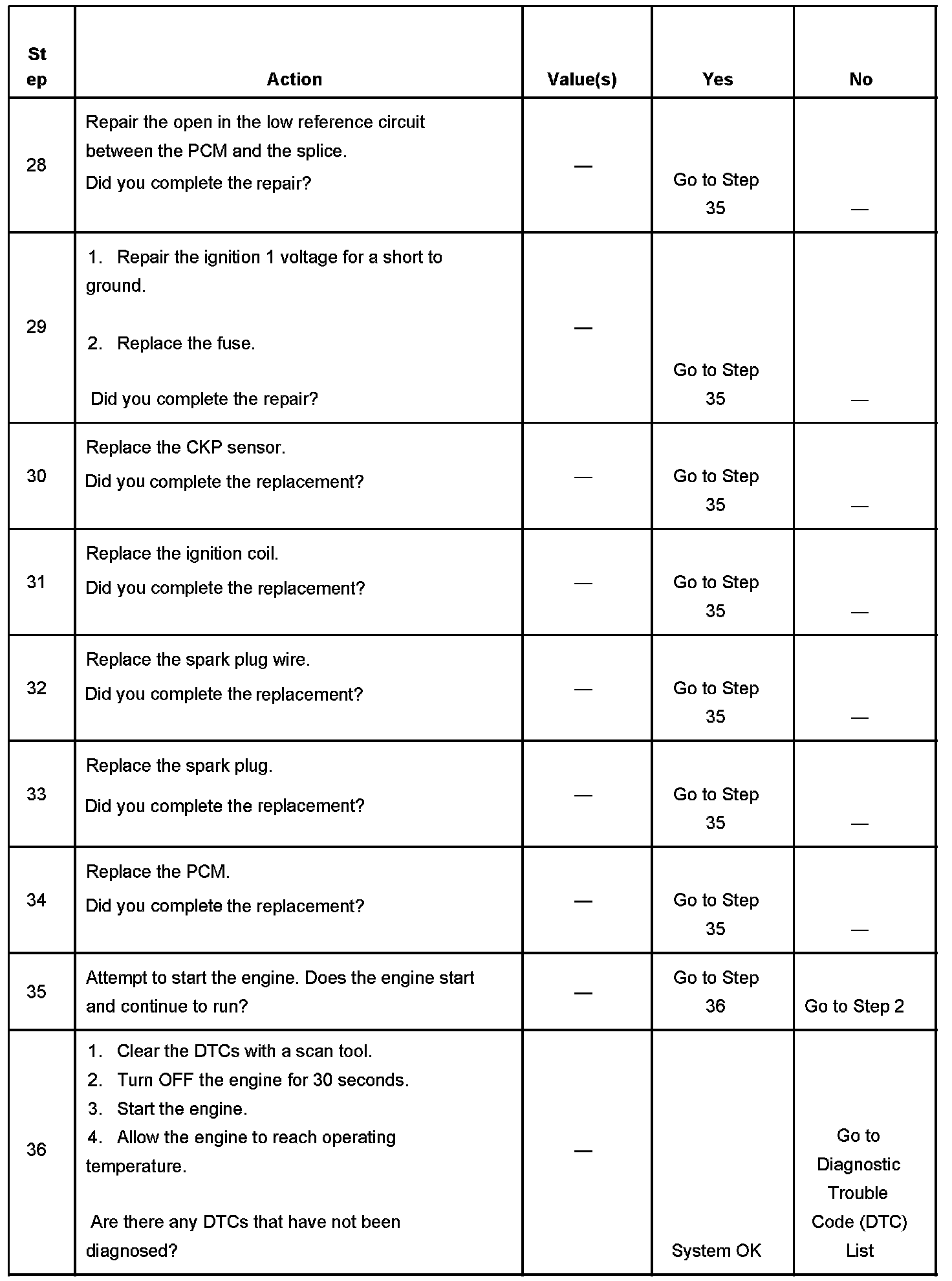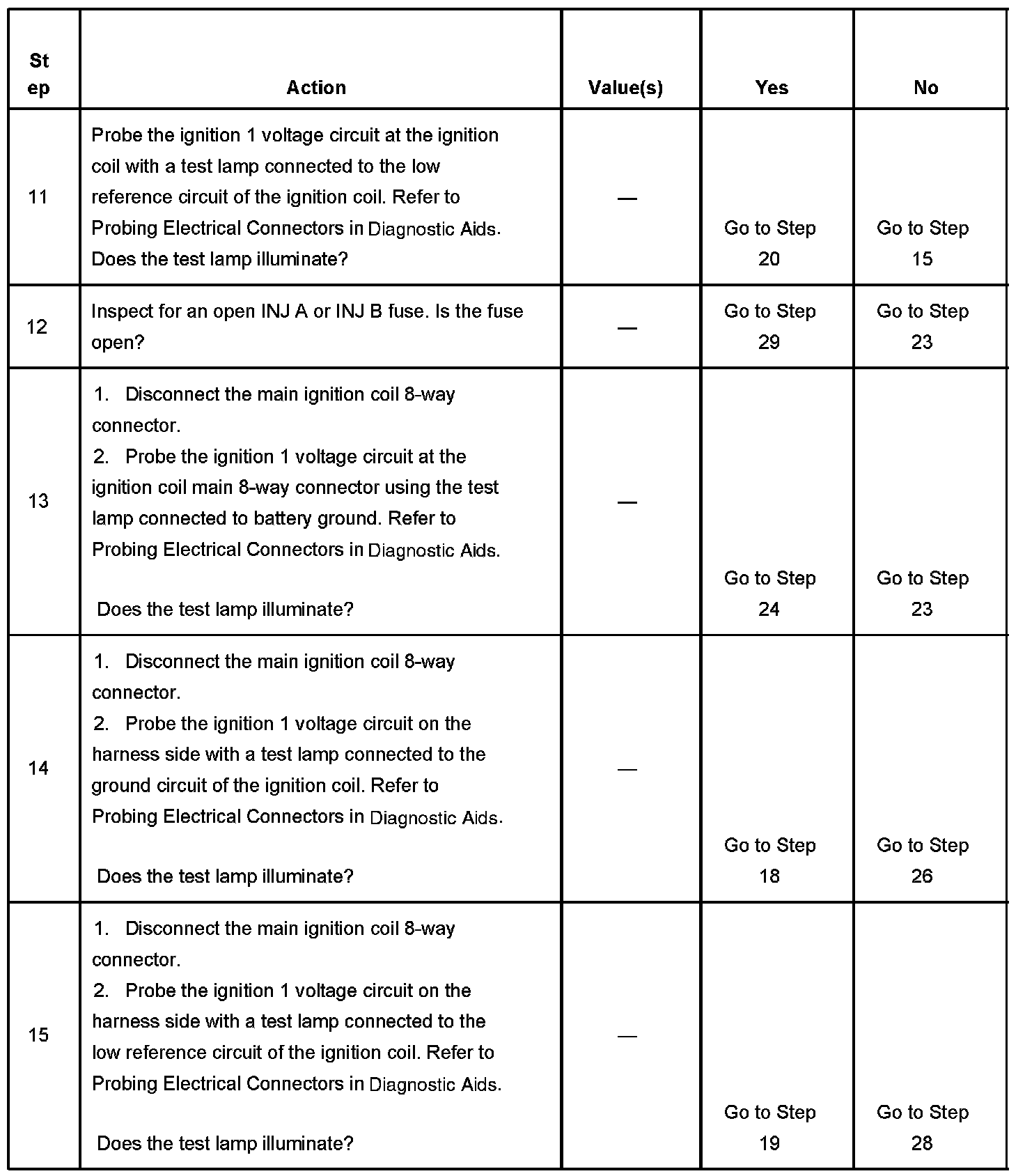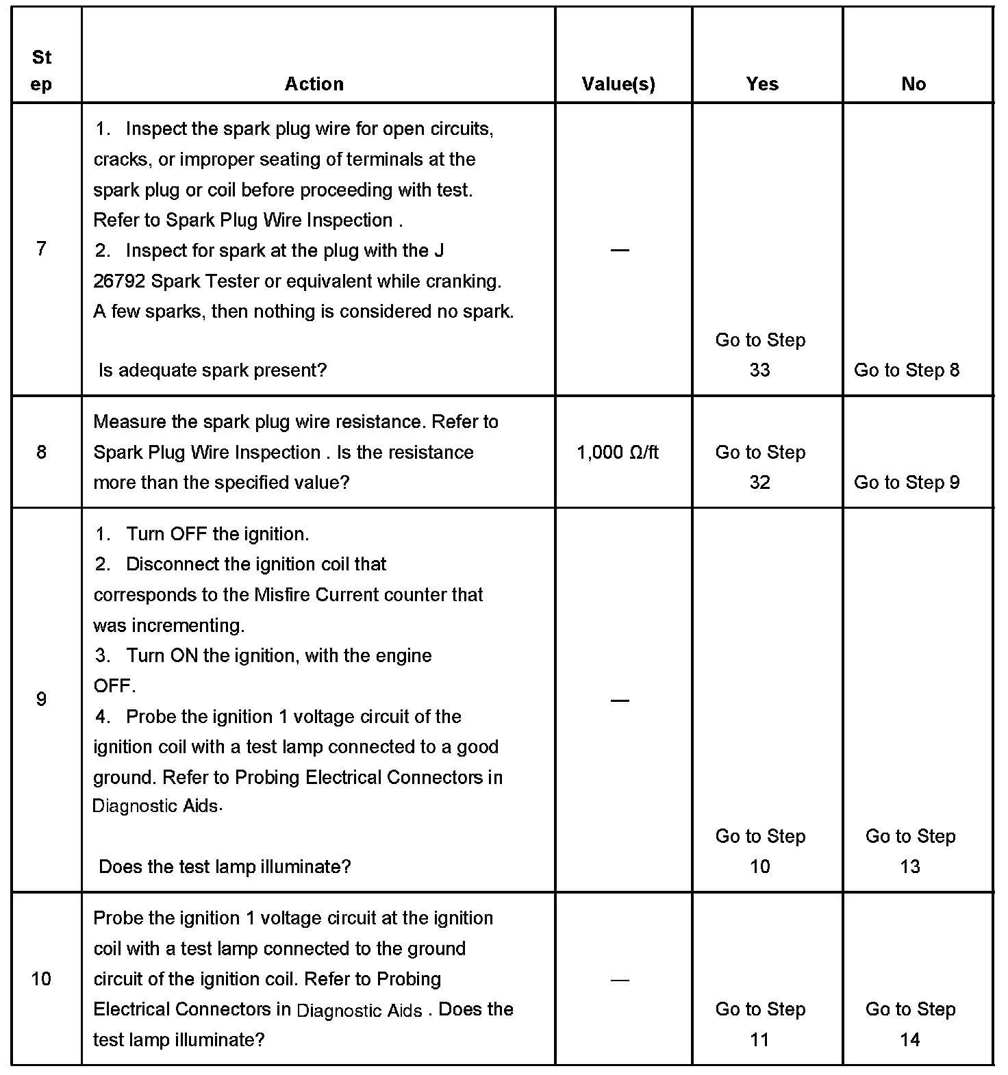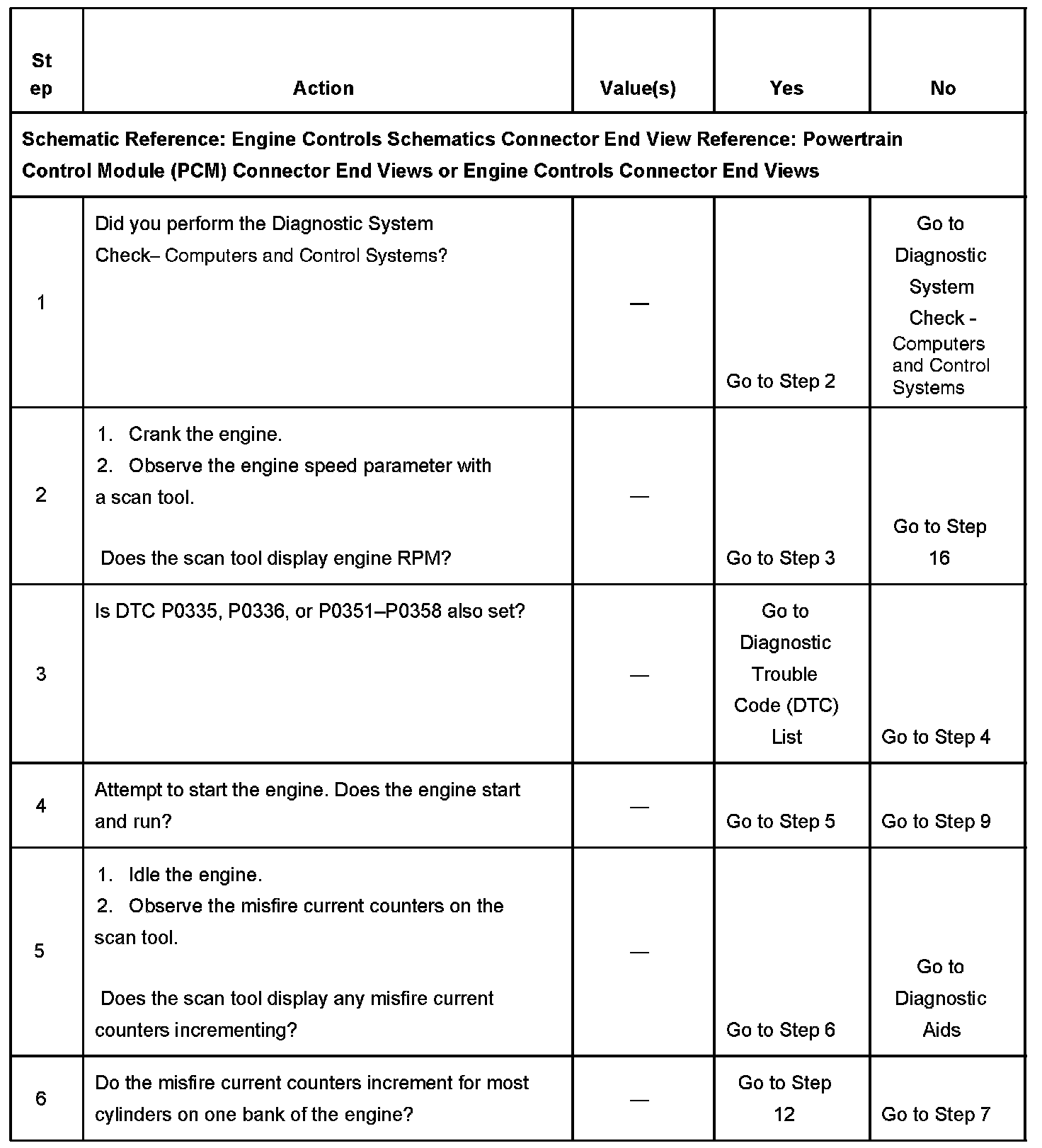 The numbers below refer to the step numbers on the diagnostic table.