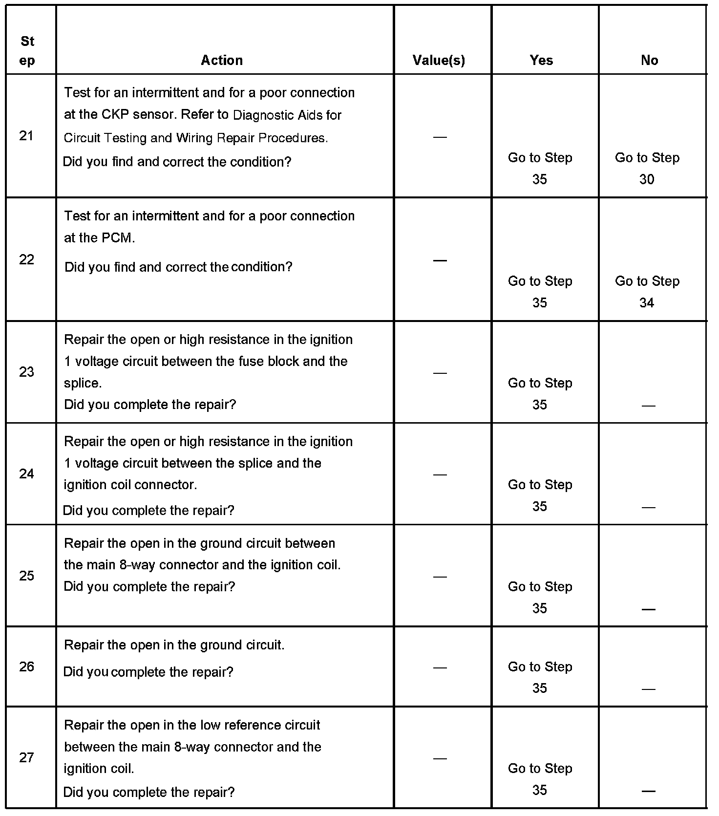 The PCM triggers an ignition coil by grounding the appropriate IC circuit using information from the crankshaft position (CKP) and camshaft position (CMP) sensors.