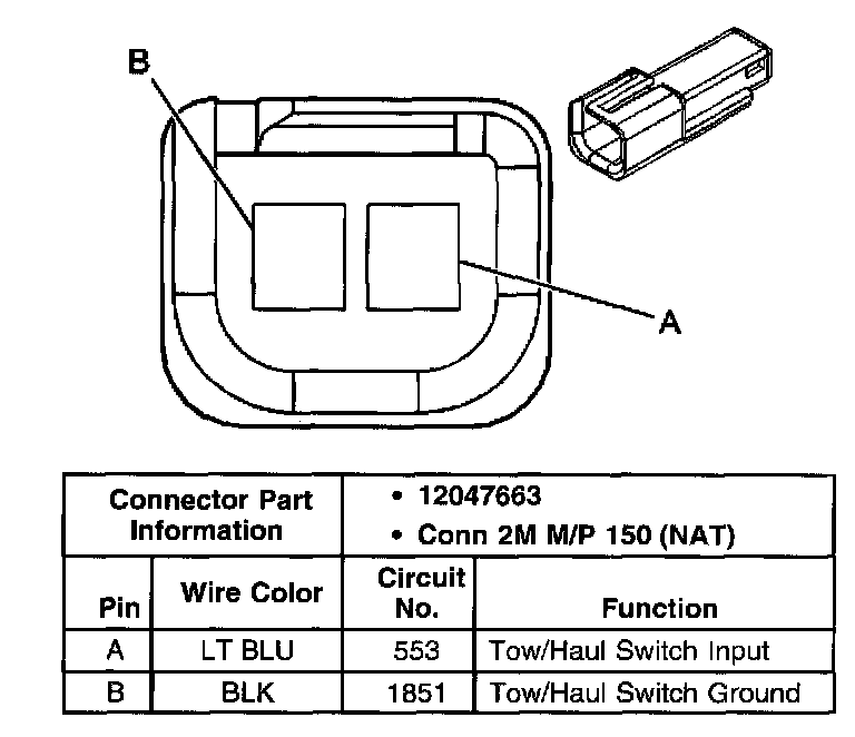4L80-E/4L85-E Tow/Haul Switch Connector, Column Wiring Harness Side: