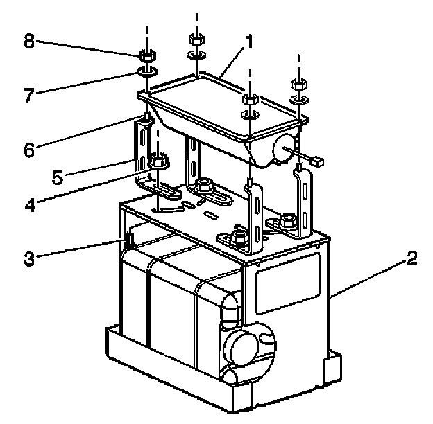 - To mount, use 4 M 6 bolts (6), nuts (8), and washers (7) to properly secure the IP module (1) to the deployment fixture (2).