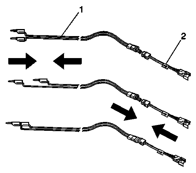 13. Connect the appropriate pigtail adapter (2) to the SIR deployment harness (1).