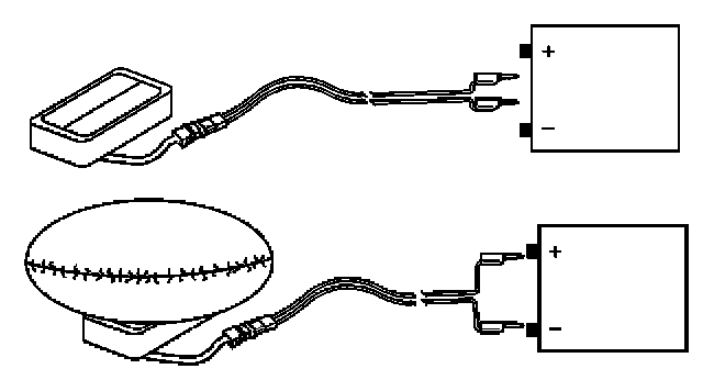 2. Place a 12 V minimum/2 A minimum power source, i.e. vehicle battery, near the shorted end of the SIR deployment harness.