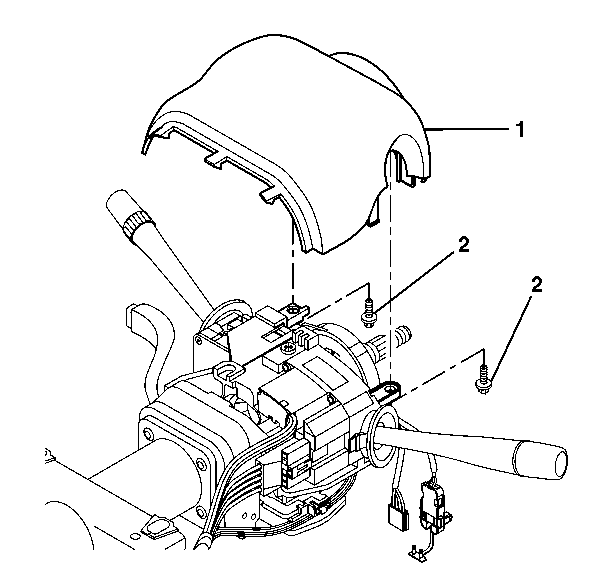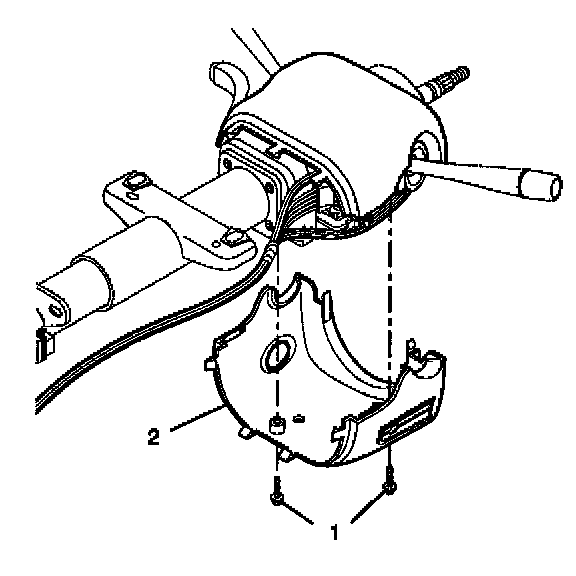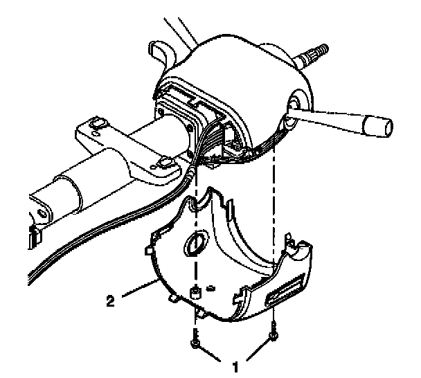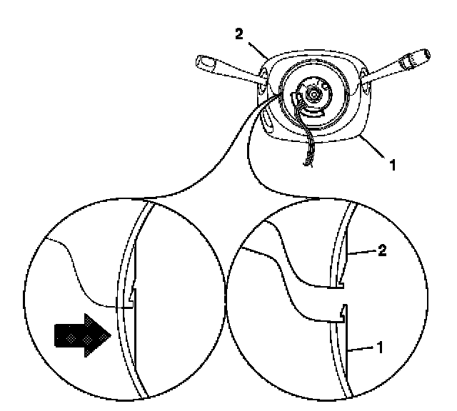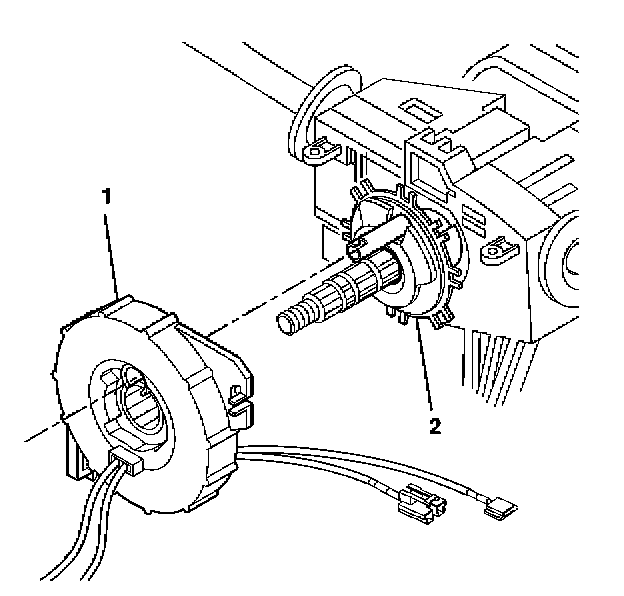 3. Align the SIR coil assembly (1) with the horn tower on the turn signal cancel cam assembly (2).