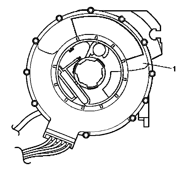 2. If centering is required, follow the instructions on the notice (1) of the coil assembly. Refer to Inflatable Restraint Steering Wheel Module Coil Centering in Steering Wheel and Column.