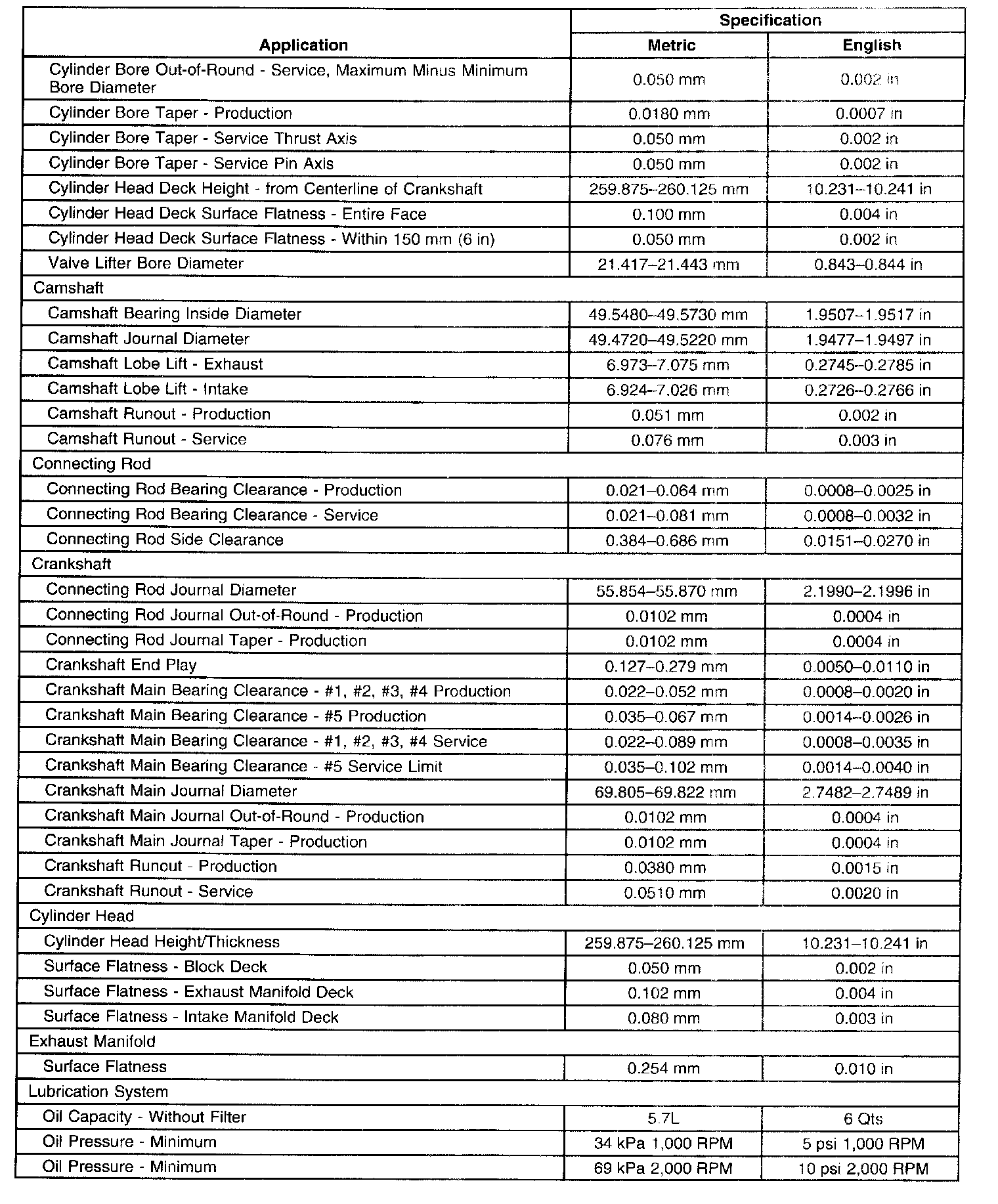 Engine Mechanical Specifications