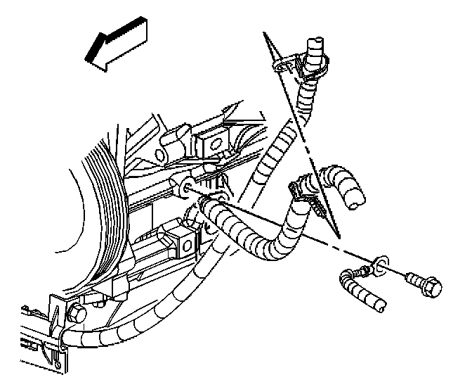 11. Remove the forward lamp wiring harness ground/negative cable bolt.