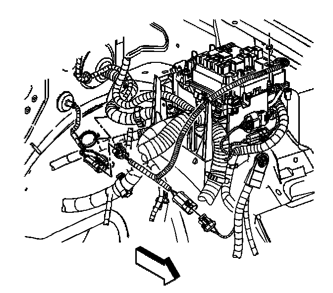 9. Remove the engine wiring harness ground/negative cable bolt.