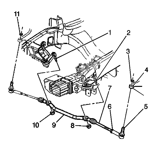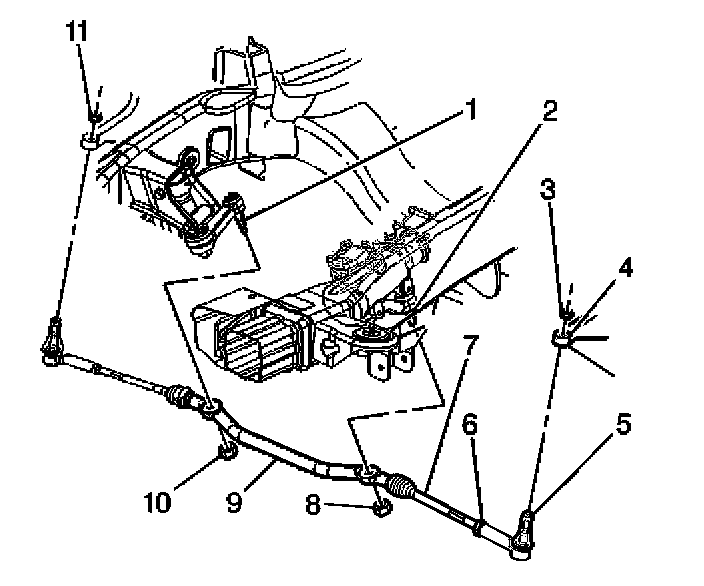 6. Remove the idler arm (2) from the vehicle.
