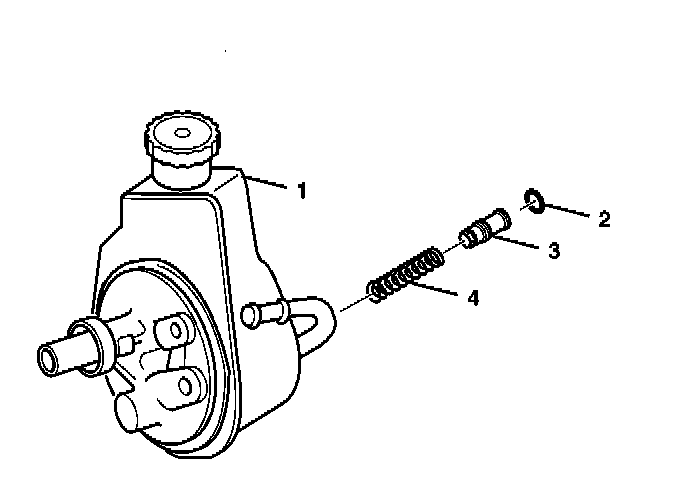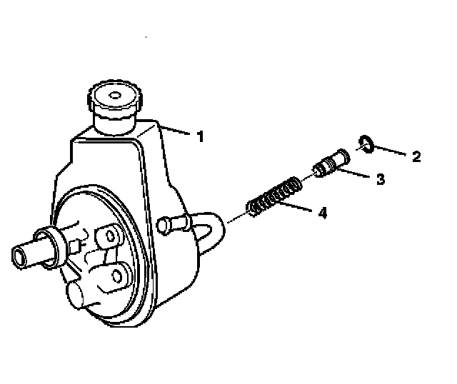 2. Remove the control valve assembly (3) from the pump housing (1). Make sure the flow control spring (4) does not fall out of the pump housing (1).