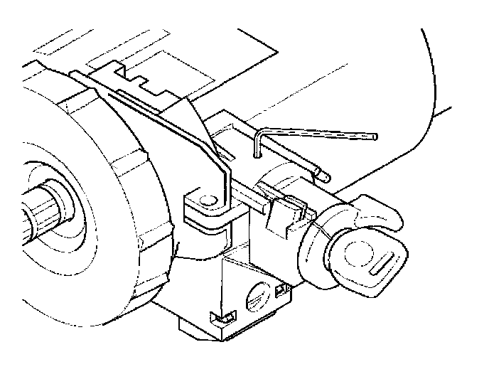 9. Insert J 42759 into the lock cylinder housing to release the tabs on the ignition switch.