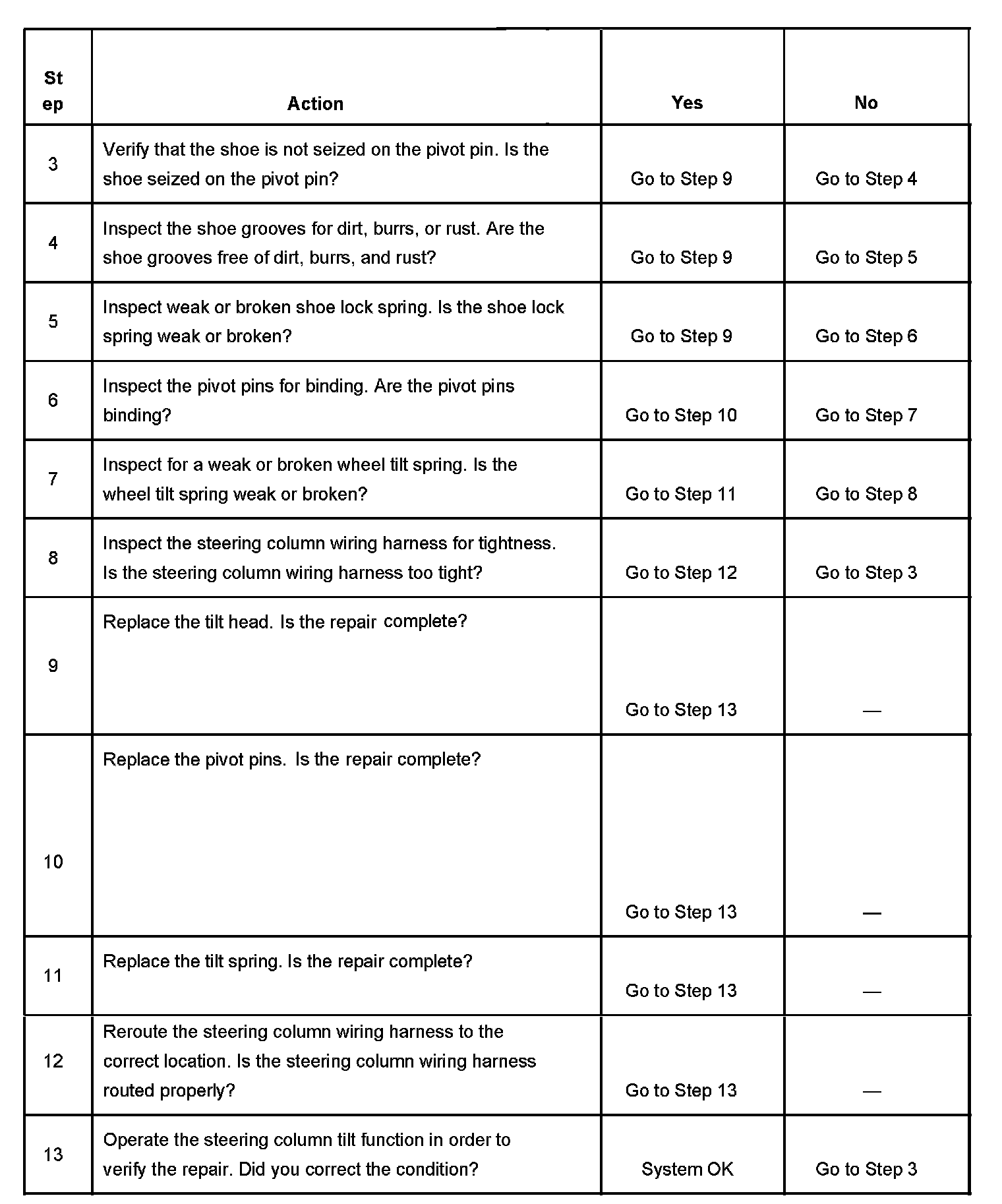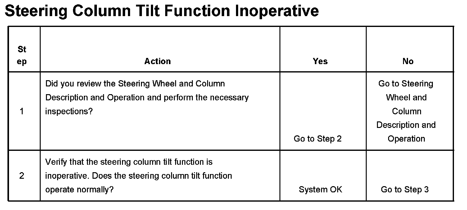 Steering Column Tilt Function Inoperative
