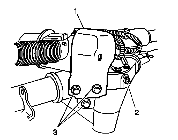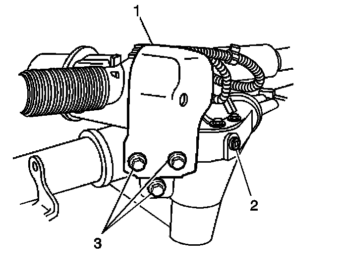 2. Remove the bolts (3) retaining the steering gear protection shield to the steering gear.