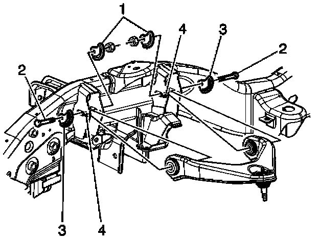 4. Install the upper control arm bolts (4) for the 15 Series 2WD, 4WD, and 25/35 Series 2WD.