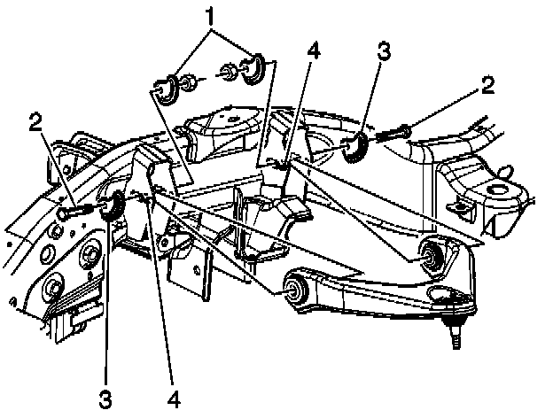 8. Remove the upper control arm bolts (4) for the 15 Series 2WD, 4WD, and 25/35 Series 2WD.