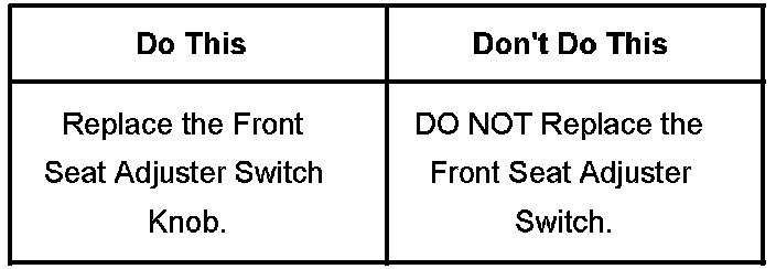 Replace the front seat adjuster switch knob. These knobs were formerly available only as part of the power seat adjuster switch. DO NOT replace the switch if the knob only needs to be replaced.