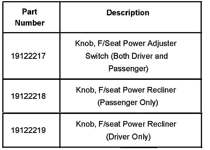 Power Front Seat (RPO AN3) Switch Knobs Loose or Missing (Replace Switch Knobs)