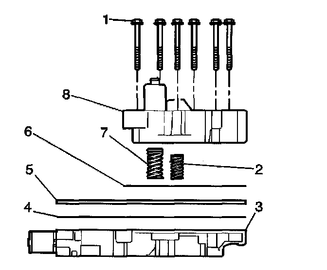 8. Remove the valve body to spacer plate gasket (4) from the spacer plate (5).