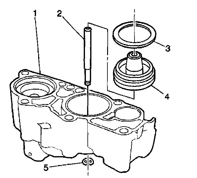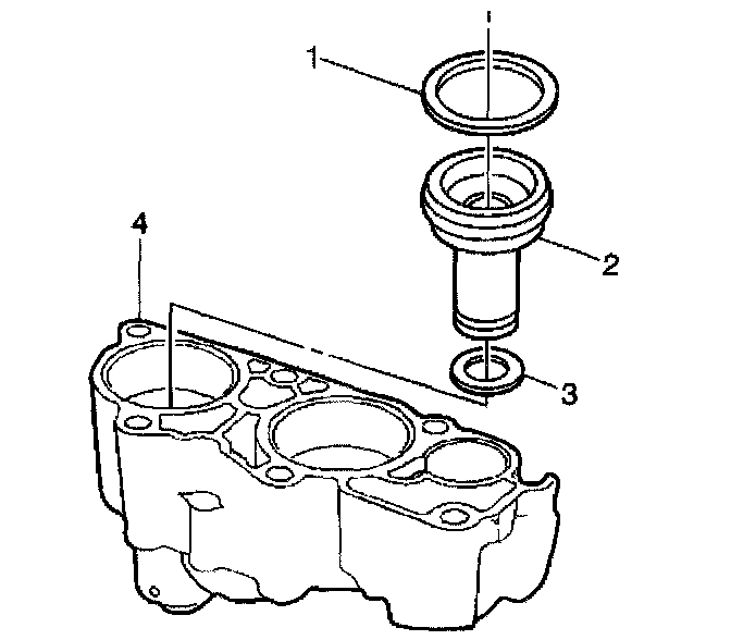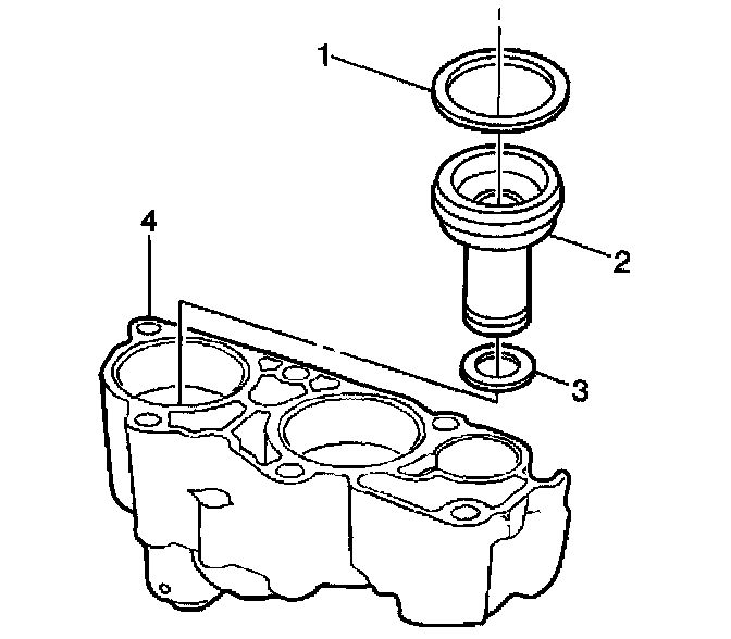 1. Install the 3rd clutch accumulator piston inner (3) and outer (1) seals. Lubricate the 3rd clutch accumulator piston seals (1, 3) with DEXRON (R) III automatic transmission fluid.