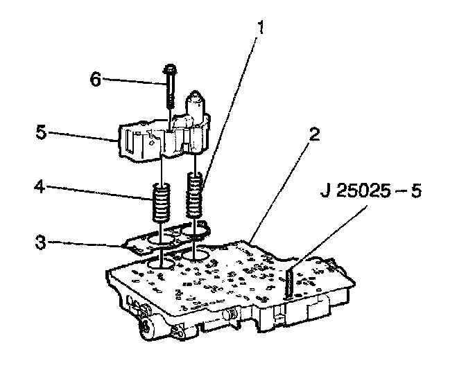 1. Install J 25025 into the valve body bolt hole where the manual shaft detent roller and spring is mounted.