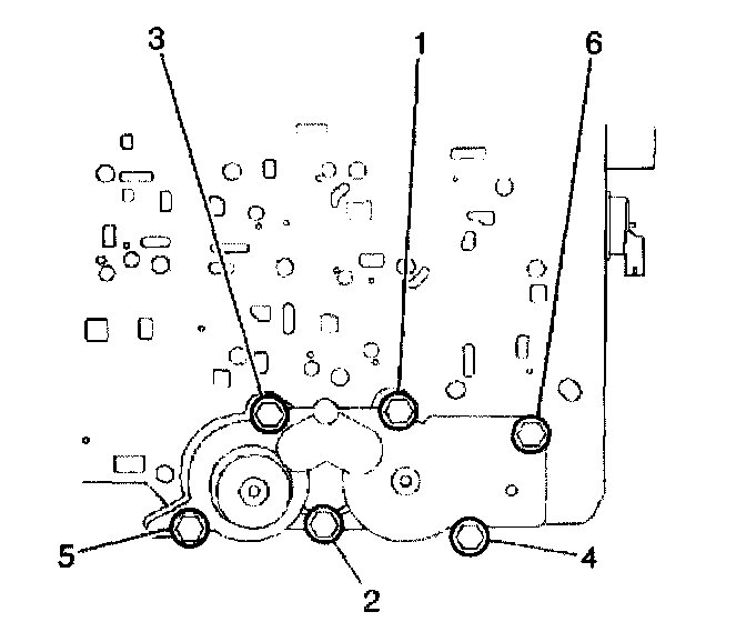 8. Install the six accumulator housing bolts (6). Start the bolts finger tight and work towards the opposite end