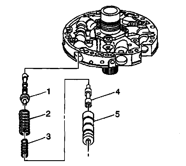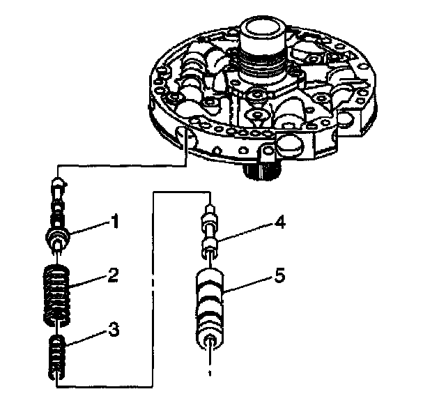 5. Remove the pressure regulator isolator spring (3) and the pressure regulator valve spring (2).