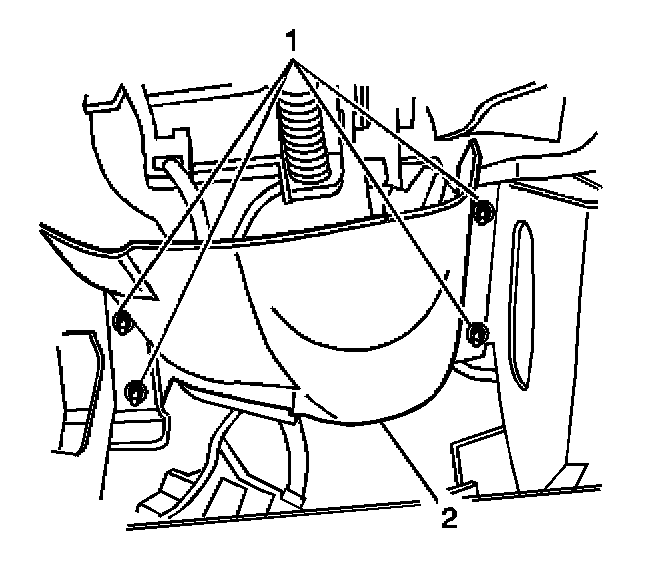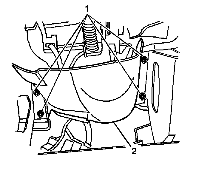 6. Remove the nuts (1) from the knee bolster deflector bracket