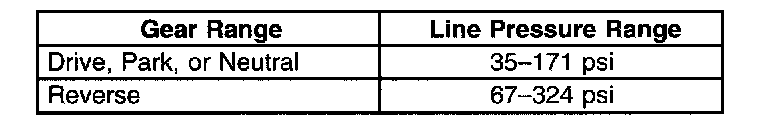 If your pressure readings differ greatly from the line pressure table, refer to the Diagnostic Tables.