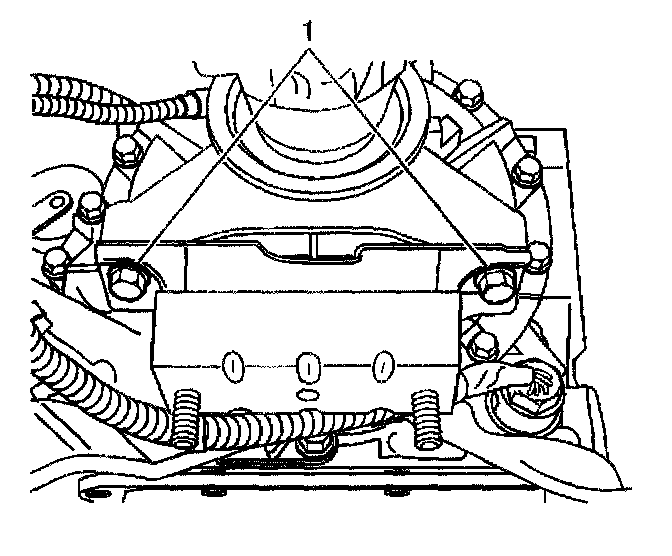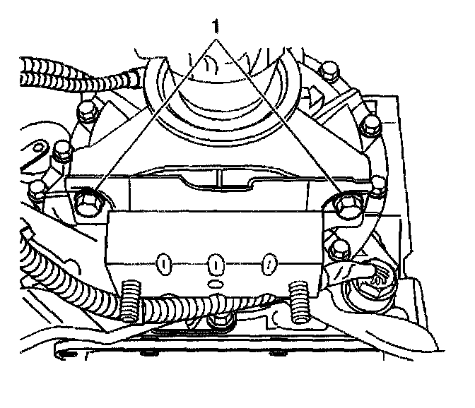 5. Remove the transmission mount to the transmission or transfer case adapter mounting bolts (1).