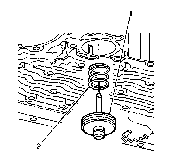 6. Install the manual 2-1 band servo piston cushion spring (2).