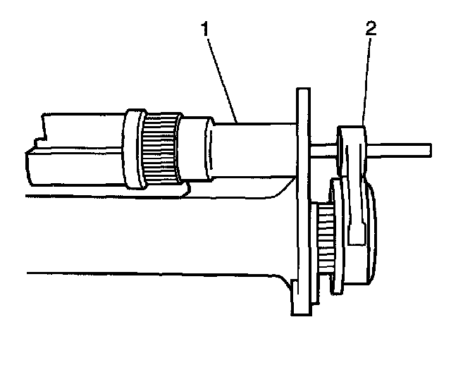2. Install the clutch fork assembly (2) into the inner axle shaft housing (1).