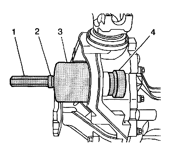 3.2. Remove the lower differential carrier assembly bushing by holding the forcing screw and slowly tightening the J21474-18.