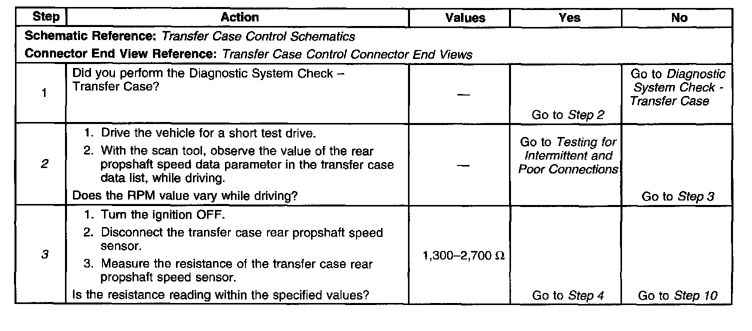 3. This step tests the internal resistance of the propshaft speed sensor.